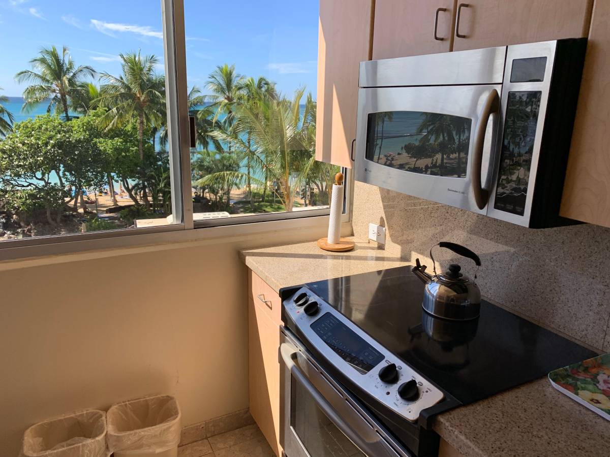 kitchen with an ocean view